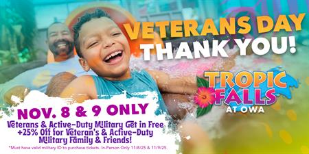 This Veterans Day Weekend, we’re celebrating those who serve with special offers at Tropic Falls!